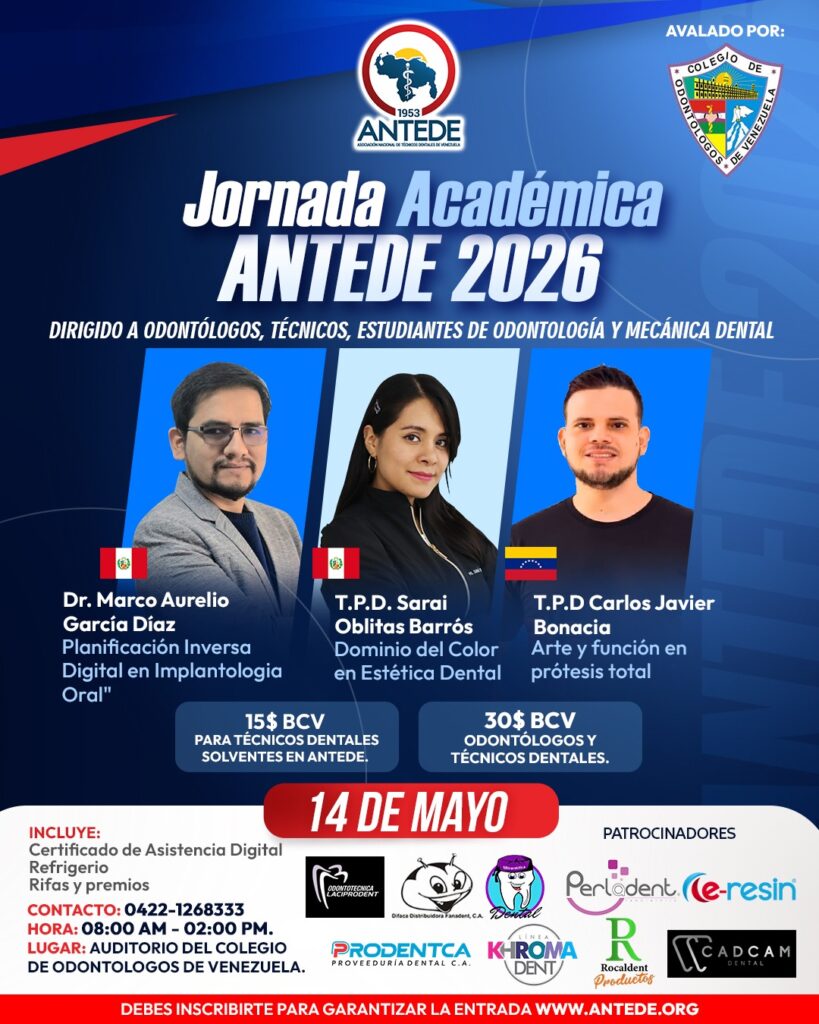 Inversión: Técnicos Dentales solventes en ANTEDE: 15$, Odontólogos y Técnicos Dentales: $30